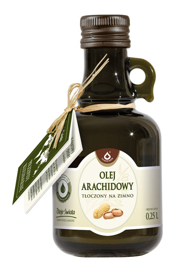 Naturalny, tłoczony na zimno olej z orzeszków arachidowych. Ma intensywny, orzechowy smak i zapach, ale przede wszystkim ma w sobie mnóstwo nienasyconych kwasów tłuszczowych, fitosterole, magnez, potas, miedź i kwas foliowy - jednym zdaniem to bardzo zdrowy i cenny tłuszcz.