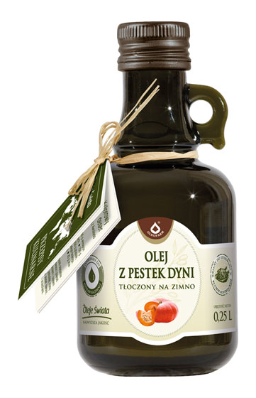 Olej z pestek dyni tłoczony na zimno, nieoczyszczony (250 ml) - Oleofarm