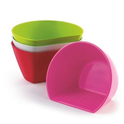 Dzięki kształtowi miski mają kąty, które ułatwiają wylewanie z nich płynów, bez obawy rozlania.