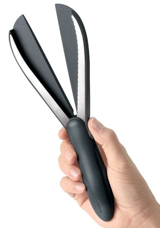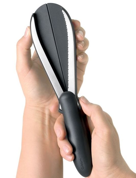 Sposób użycia otwieracza nie sprawia problemów. Na boku otwieracza znajdują się przyciski otwierające ramiona, ich zaciśnięcie zamyka urządzenie. Kompaktowa forma ułatwia przechowywanie, a także zabezpiecza przed ewentualnymi skaleczeniami o ostrza otwieracza.