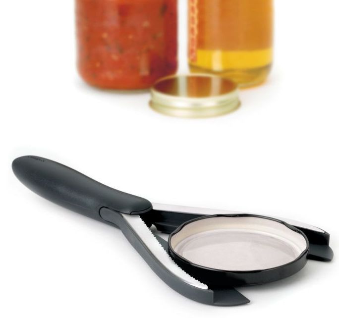 2. Wciśnij pokrywkę słoika pomiędzy otwarte ramiona otwieracza, by zapewnić pewny uchwyt.