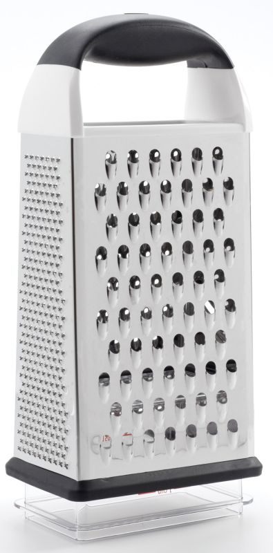 Tarka ma wygodną rączkę, która zapobiega ślizganiu się dłoni oraz podstawę, która pozwala na stabilne ustawienie tarki.