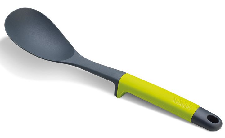 Łyżka to narzędzie, bez którego wyobrazić sobie pracę w kuchni. Łączy radośnie nasycony seledynowy kolor silikonowej rączki z szarym i czarnym plastikiem. Stworzona do nowoczesnej kuchni.