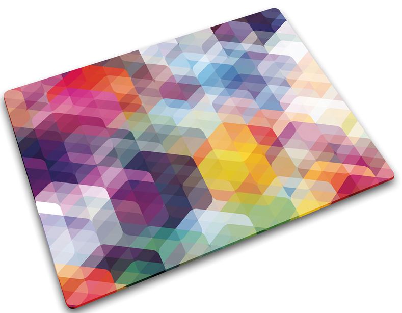 Prostokątna podstawka ze szkła hartowanego z ciekawym, kolorowym wzorem doda koloru w każdej kuchni. Dzięki materiałom, z jakich została zrobiona, jest bardzo trwała i znajdzie zastosowanie w kuchni i na stole. Może służyć jako deska do krojenia i przygotowania potraw, może też być talerzem do podawania (np. serów, owoców, wędlin), może też służyć jako podstawka pod gorące naczynia - wytrzymuje temperaturę do 280 stopni. Możesz też używać jej jako podstawki na stół.