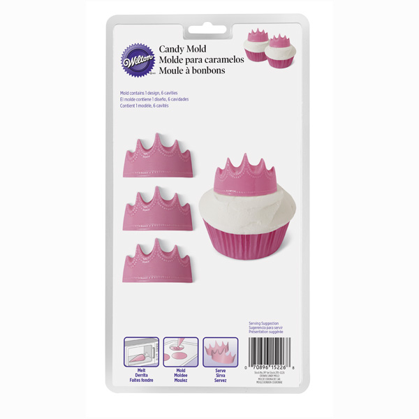 Plastikowa foremka do czekoladowych ozdób w kształcie korony. W foremce jednorazowo można zrobić 6 koron.