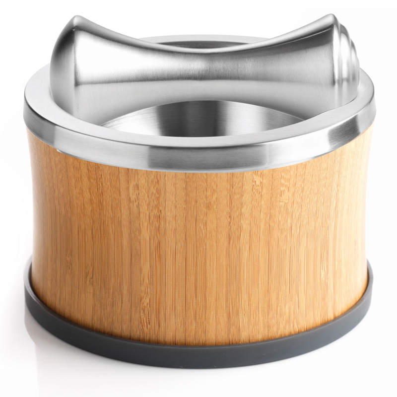 Pokryta gumą stopa zapobiega ślizganiu się bambusowej misy w trakcie pracy. Może również służyć jako pokrywka do pojemnika.