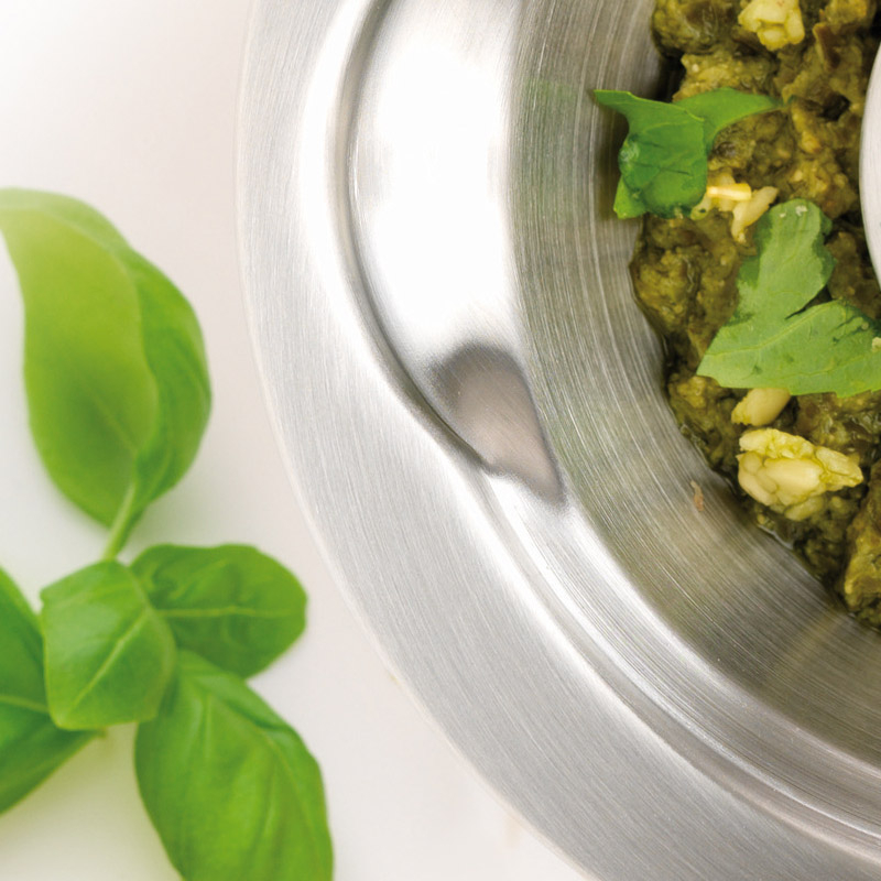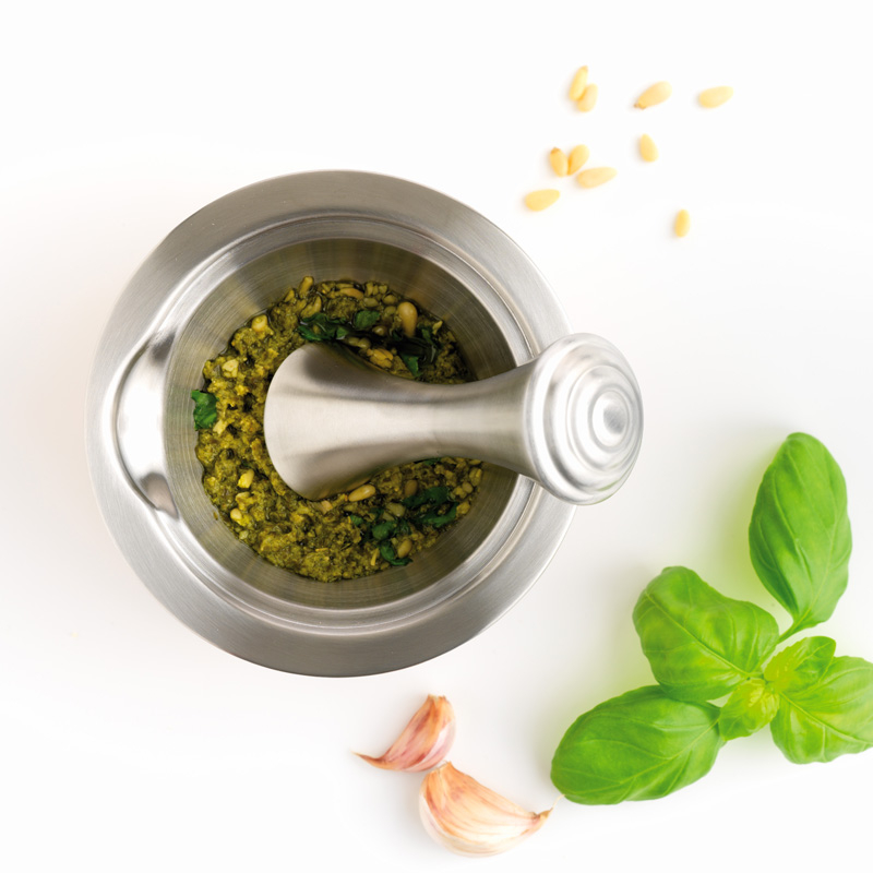 Moździerz i tłuczek zostały wykonane ze stali nierdzewnej. Dzięki temu nie osadzają się na nich drobinki przypraw, co czyni je szczególnie higienicznymi i odpornymi na wnikanie aromatów.