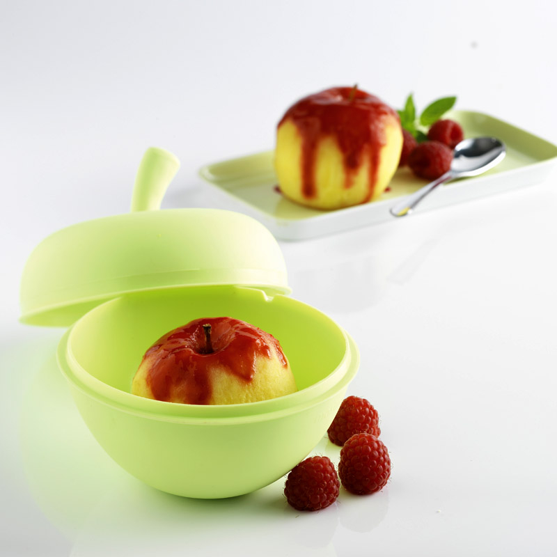 W silikonowych miseczkach można szybko przygotować gotowane i pieczone owoce, a przezroczyste pokrywki pozwalają sprawdzić stopień przygotowania zawartości. Miseczek można używać w piekarniku lub kuchence mikrofalowej.