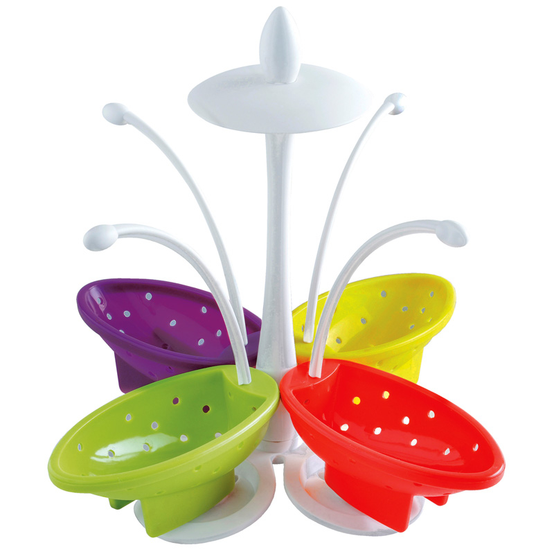 Zestaw można połączyć na specjalnym stojaku i gotować jednocześnie 4 jajka, co znacznie skraca proces przygotowania.