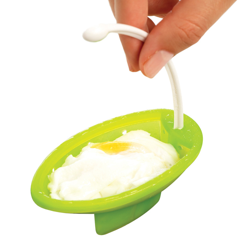 Silikonowe pojemniki mają specjalne perforacje, które umożliwiają wodzie swobodne przepływanie wokół gotujących się jajek. A jednocześnie zachowują kształt jajka, które nie rozpływa się po garnku.