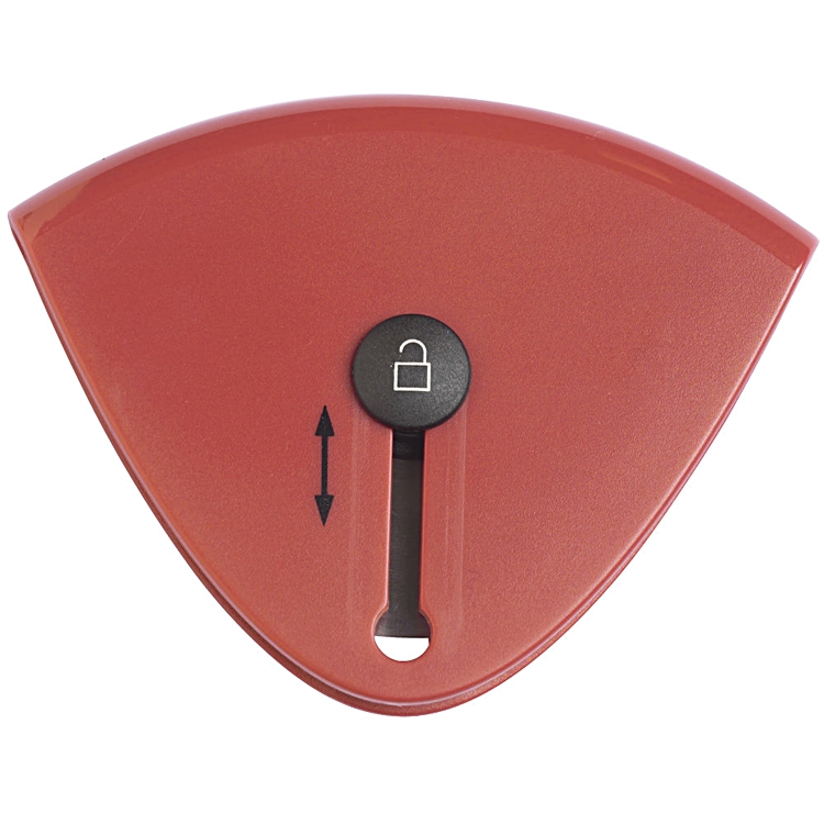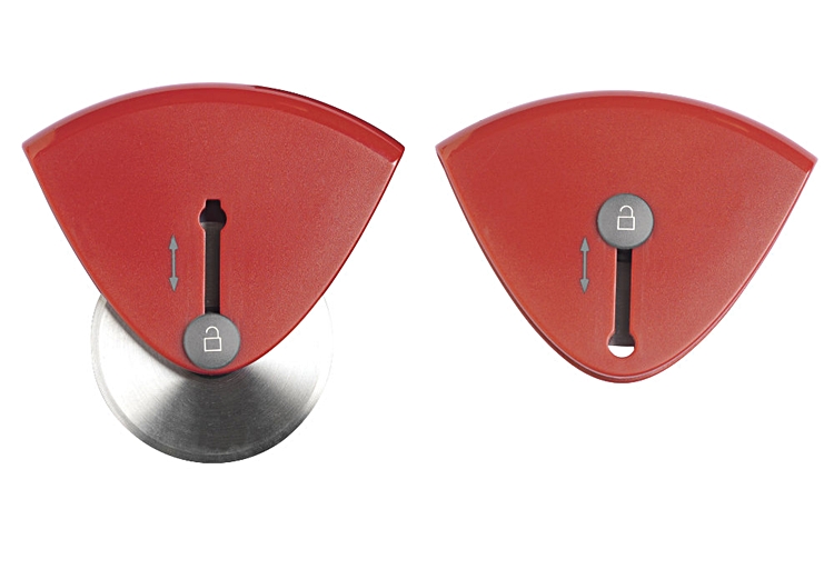 Na obudowie znajduje się specjalny przycisk, którego przesunięcie w górę lub w dół, wysuwa albo chowa ostrze blokując je w wybranej pozycji. To z kolei sprawia, że nóż schowany w szufladzie na pewno nie skaleczy przypadkowo.
