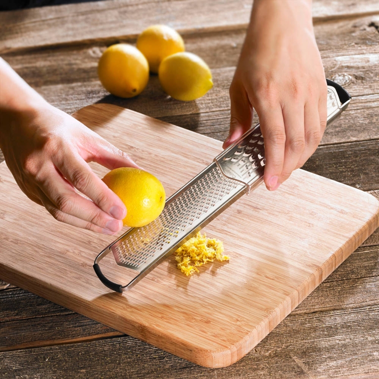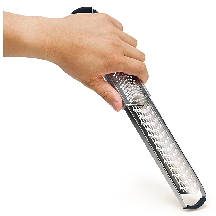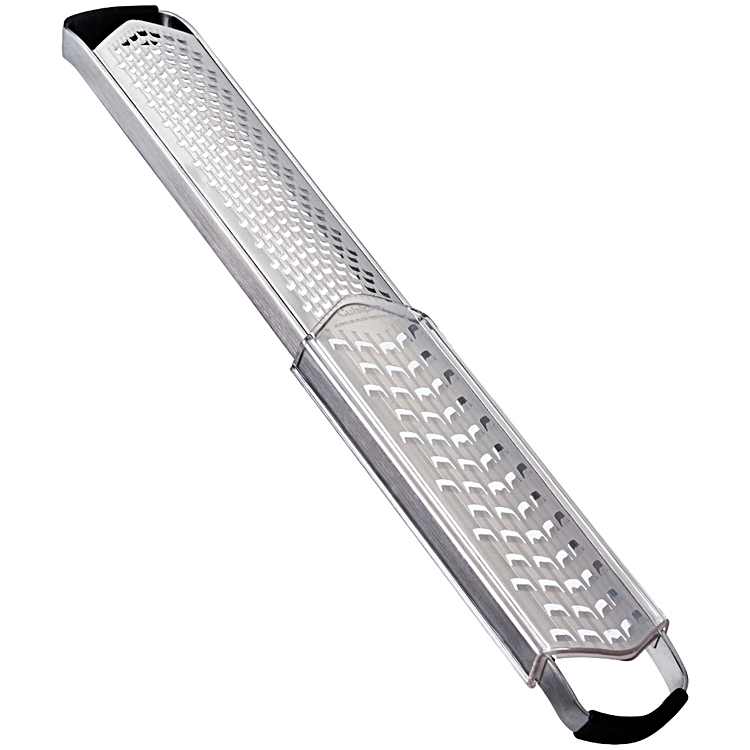 Tarka została podzielona tak, by jedna jej połowa z mniejszymi oczkami służyła do tarcia skórki cytrusów, czosnku, imbiru lub parmezanu.