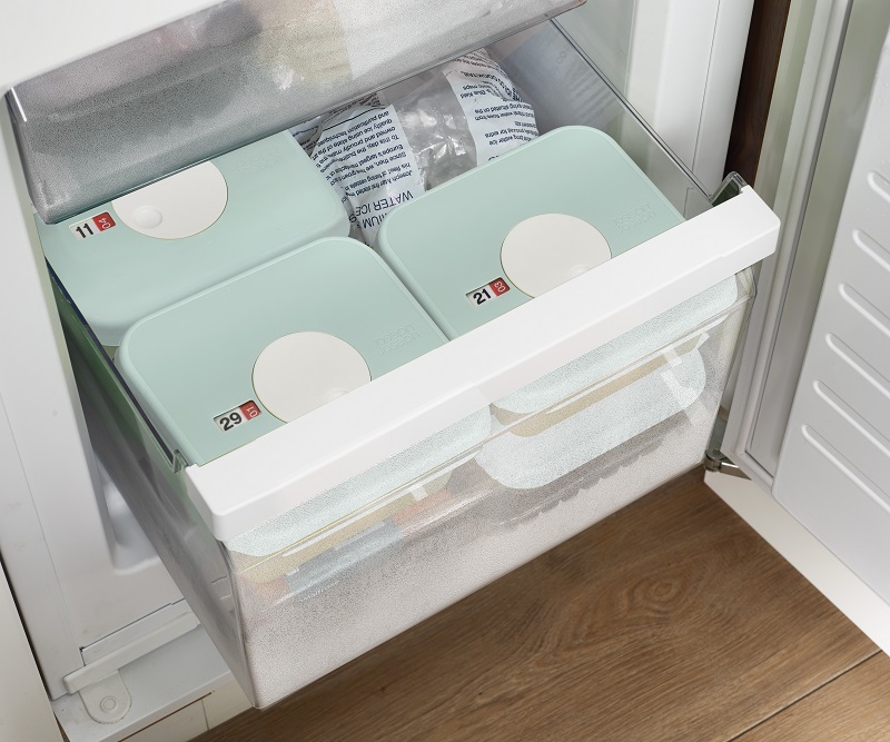 Dużą zaletą pojemników jest możliwość ustawienia na nich daty – dnia oraz miesiąca. Wystarczy, że przekręcimy umieszczone w pokrywce pokrętło w lewo, by ustawić dzień i w lewo, by ustawić odpowiedni miesiąc. Dzięki temu Twoje potrawy już nigdy się nie przeterminują.