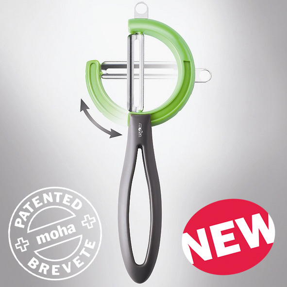 Obieraczka Reverso Veggie od firmy Moha ma obrotowe ostrze, dzięki któremu łatwo dostosować ją do Twojego stylu obierania i ułożenia dłoni, ale również do kształtu warzywa.