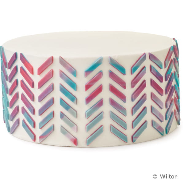 Mata ułatwia wykonanie pięknych dekoracji w kształcie geometrycznych jodełek. To idealne ozdoby do klasycznych tortów urodzinowych lub weselnych. Można wykorzystać pełen wzór lub tworzyć pojedyncze dekoracje, np. na ciasteczka lub cupcake’i.