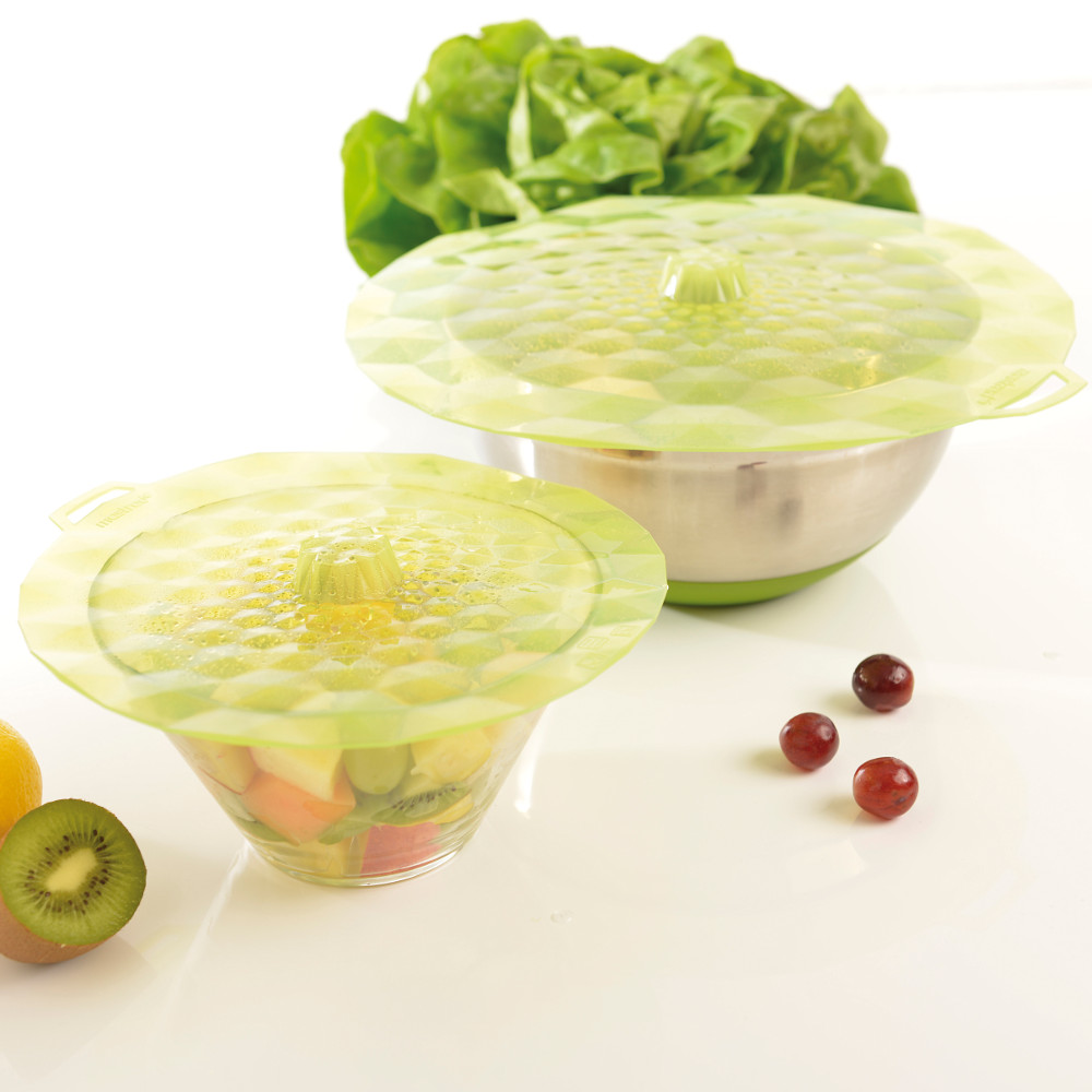 Pokrywki silikonowe to niezbędne narzędzie w każdej kuchni. Idealnie dopasowują się każdego naczynia wykonanego z różnych materiałów, by chronić ich zawartość. Pokrywki można stosować w zamrażarce, lodówce, do gotowania oraz w kuchence mikrofalowej.