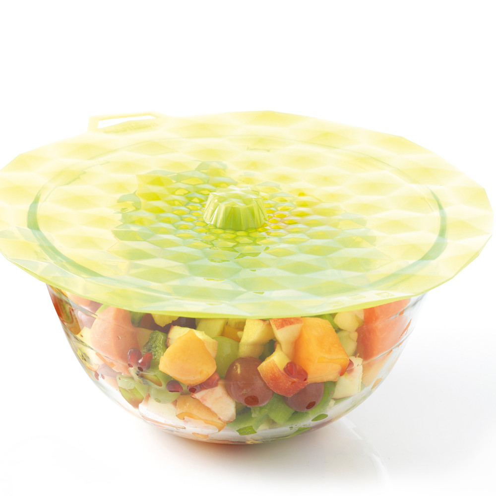 W lodówce pokrywka zapewnia świeżość dania i zapobiega jego wysychaniu oraz chroni przed niechcianymi zapachami, a w mikrofalówce świetnie sprawdza się jako zabezpieczenie przed pryskaniem podgrzewanych dań jednocześnie przyśpiesza jego podgrzewanie.