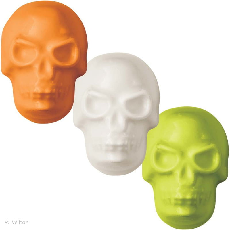 Przerażające i doskonałe na święto Halloweenowe do podania gościom lub wręczenia krzyczącym pod drzwiami ,,cukierek albo psikus " słodkości w kształcie czaszek.
