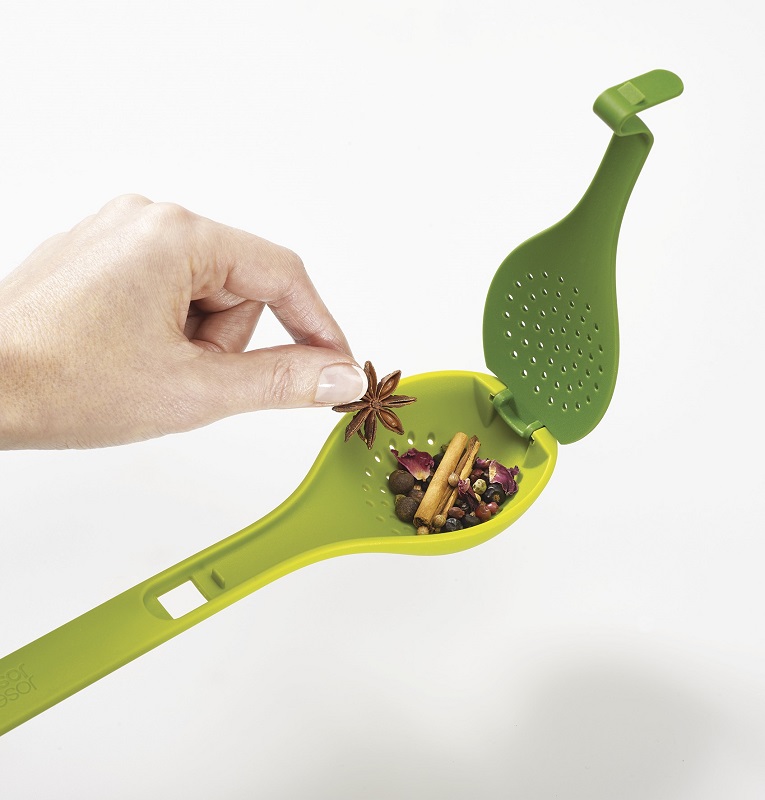 Innowacyjna, idealnie zaprojektowana łyżka, to niezbędny gadżet dla wszystkich, którzy uwielbiają i stosują w kuchni zioła. Dlaczego jest taka świetna? Ponieważ sprawia, że dodatki, w postaci np. poszatkowanych ziół, nie dostają się do posiłku, który mimo to i tak nasycony jest ich pięknym i bogatym aromatem.