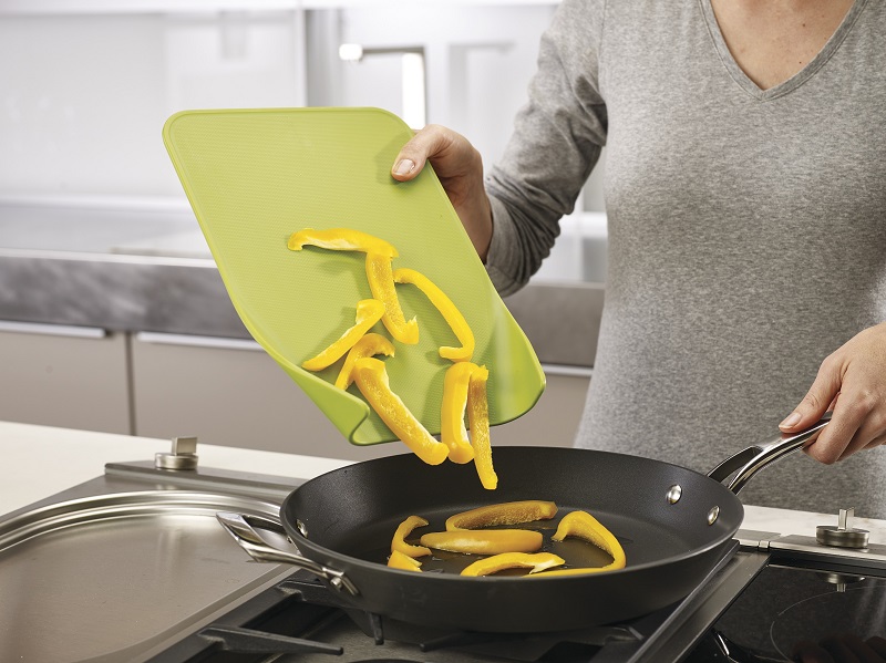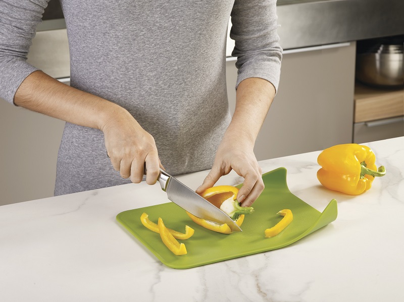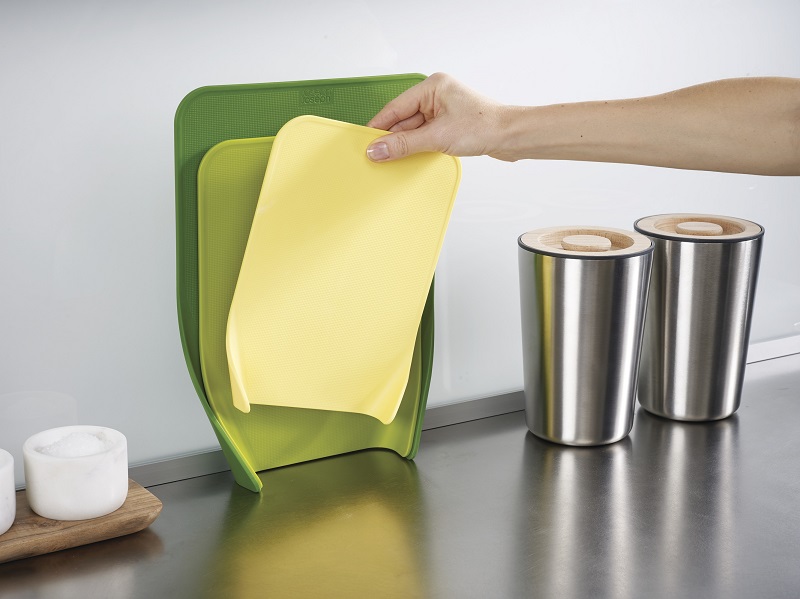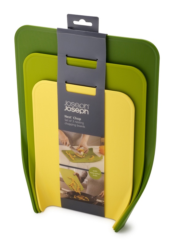 Ten zestaw to praktyczny zbiór desek, które pozwalają zaoszczędzić wiele miejsca podczas przechowywania. Ten kompaktowy zestaw zawiera trzy deski w różnych wymiarach powierzchni. Zakrzywiona konstrukcja z jednej strony pozwala aby deski stały pionowo podczas przechowywania oraz działa również jako poręczne rynny do przesypywania krojonych produktów prosto do naczynia, garnka lub patelni.