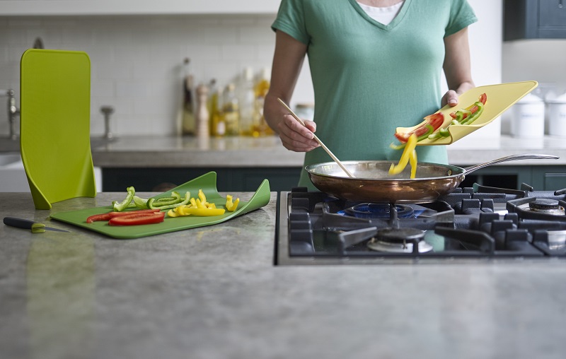 Każda deska ma fakturowo skonstruowaną powierzchnię oraz antypoślizgowe nóżki, które zapobiegają przesuwaniu się deski po blacie.