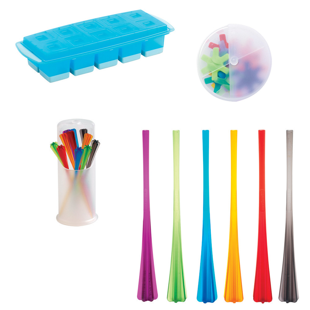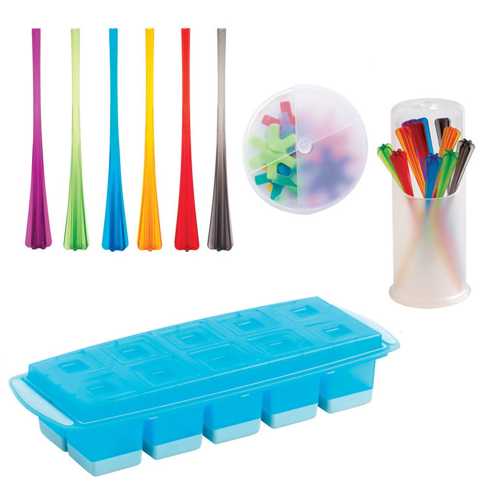 W zestawie znajdują się długie, kolorowe mieszadełka- słomki. Służą one do mieszania drinków oraz jako słomki do napoju. Idealne do long drinków.