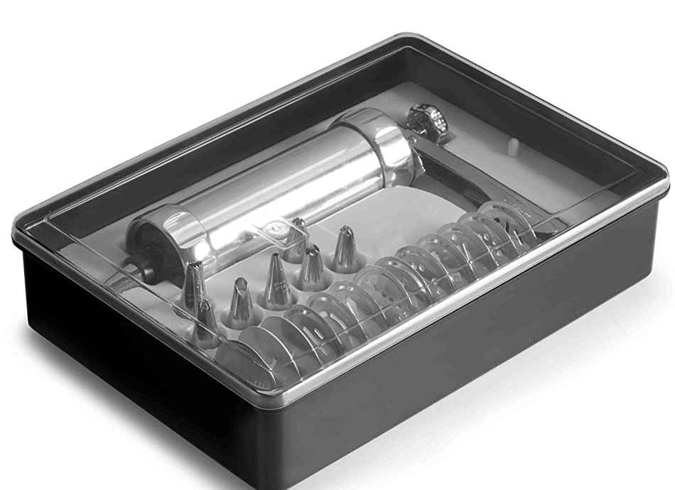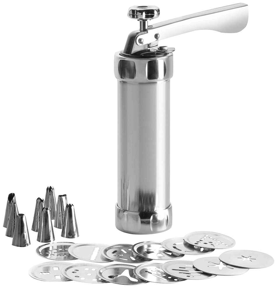 Zestaw dla miłośników domowych ciasteczek. Dzięki niemu wyciśniesz ciasteczka w różnych kształtach wprost na pergamin, a po upieczeniu udekorujesz je lukrem lub kremem.
