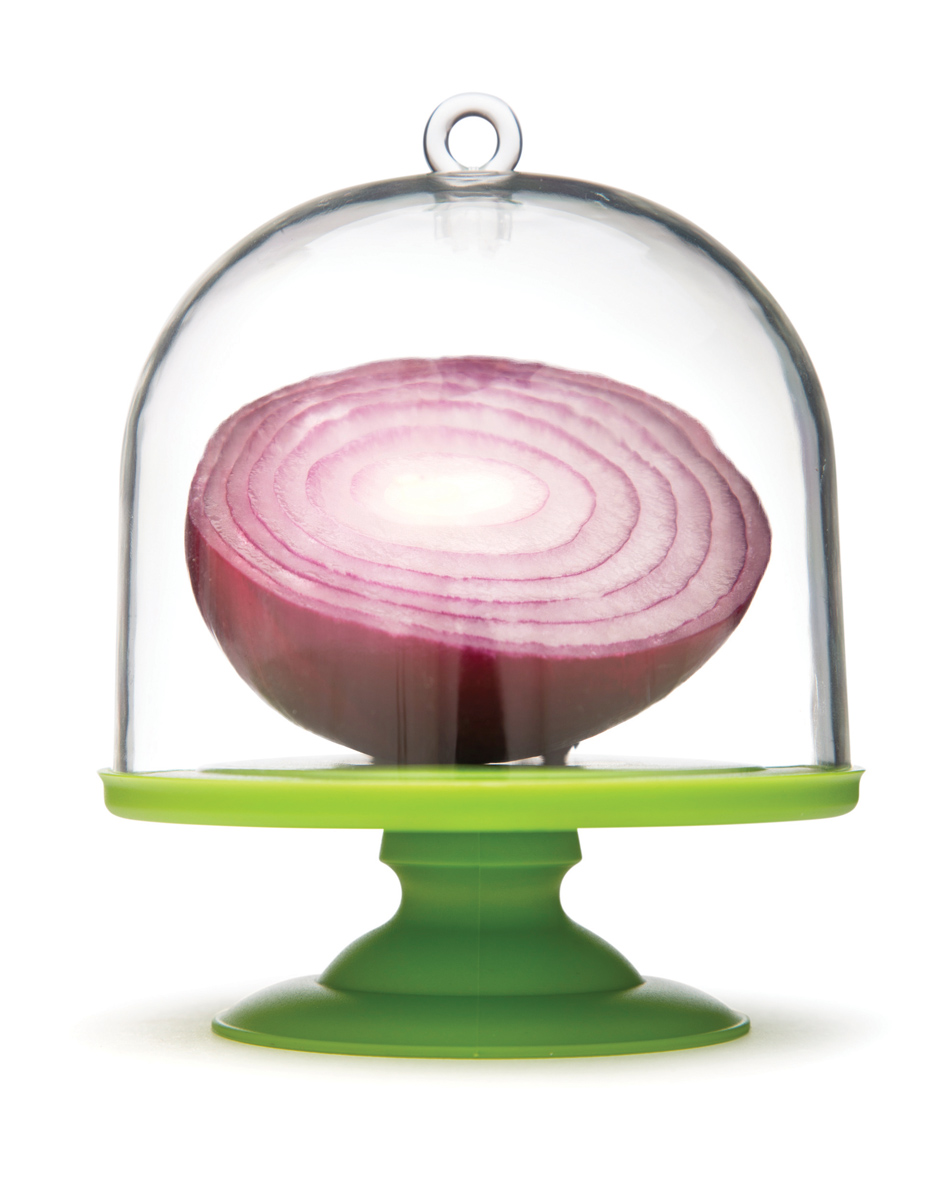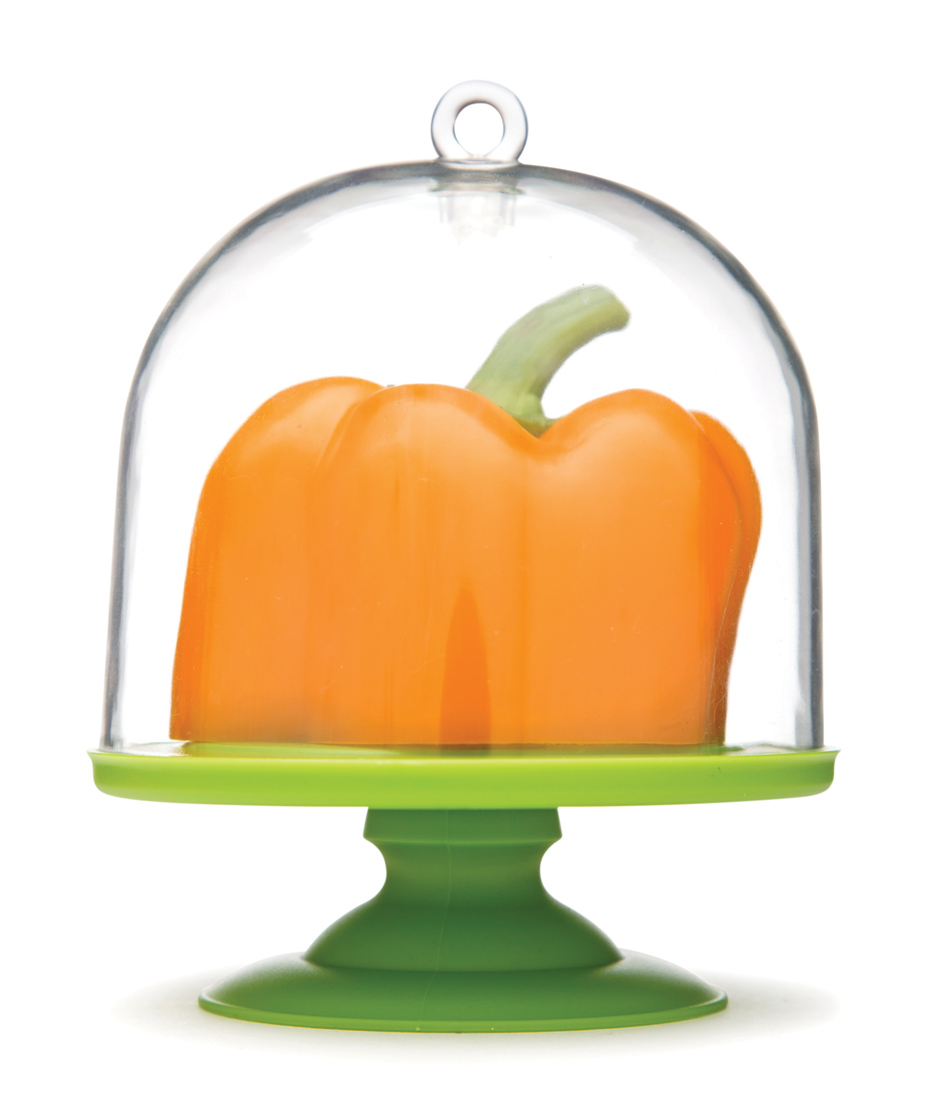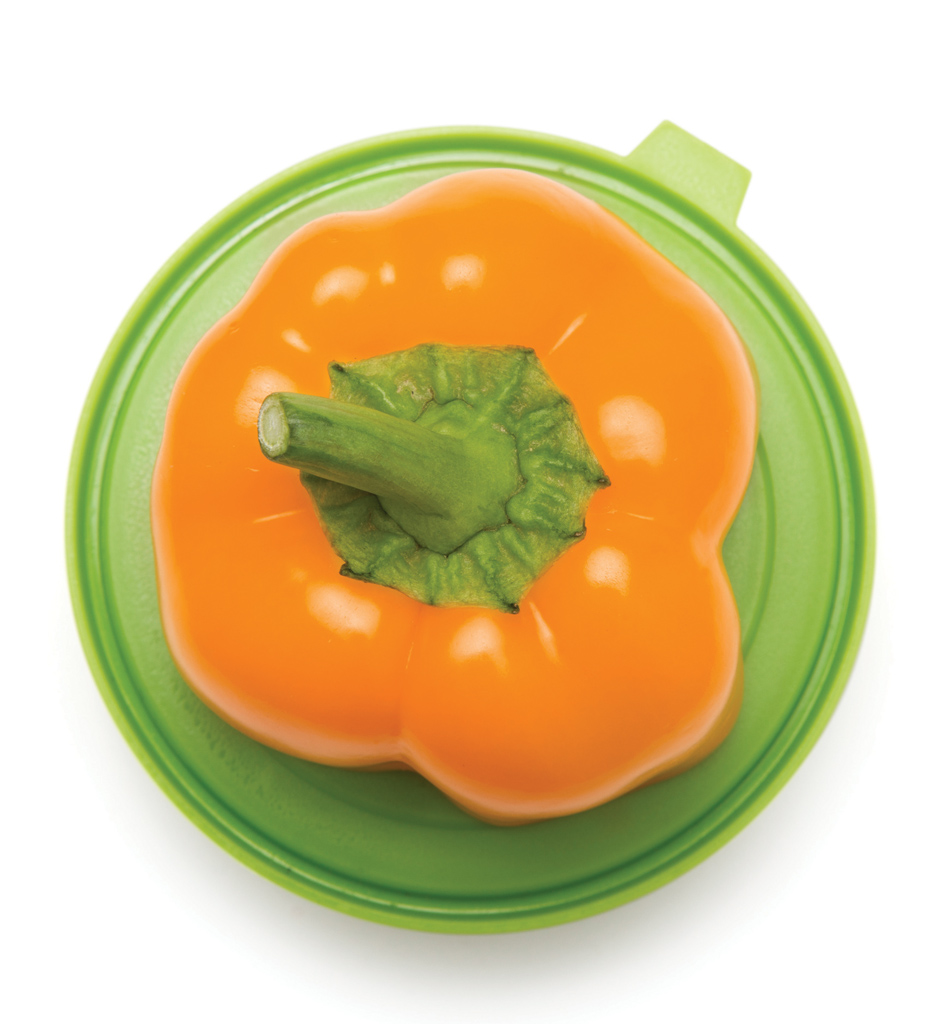 Zachwyca swoją praktycznością i oryginalnym wyglądem. Pojemnik ułatwia przechowywanie warzyw lub owoców, które nie zostały zużyte w całości. Doskonale sprawdzi się do połówki cytryny, kawałków pomidora, papryki lub cebuli.