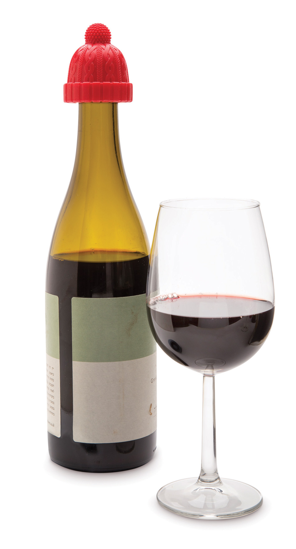 Korek do butelki w kształcie czapeczki, który pozwoli na bezpieczne przechowywanie otworzonego wina.