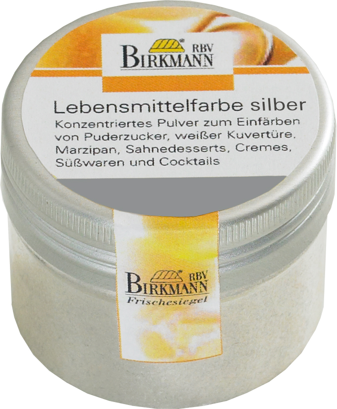 Silnie skoncentrowany barwnik spożywczy w proszku w kolorze srebrnym. Wystarczy zaledwie szczypta by zabarwić masę.