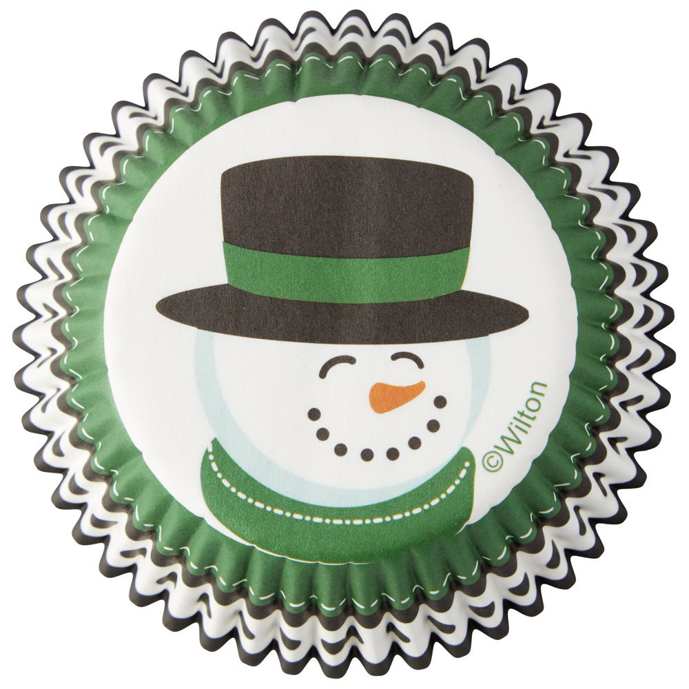 Zielono - biało czarne papilotki zostały ozdobione wzorem bałwanka na spodzie, a także kolorowymi pasami na bokach. Papilotki, które przysporzą mnóstwo zimowej radości.
