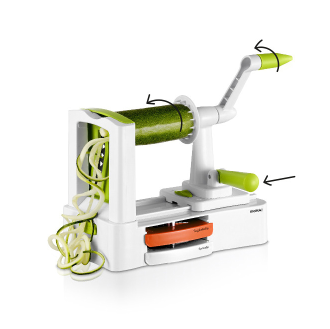 Krajalnica pozwala na krojenie warzyw i owoców w dekoracyjne wstążki. Dzięki niej jest to bardzo proste, bezpieczne i zajmuje niewiele czasu.