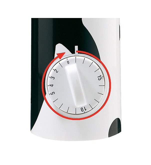 - Nastaw długość parzenia przekręcając najpierw pokrętło timera do końca, a następnie na wybrany czas. Najdłuższy czas parzenia to 20 minut.