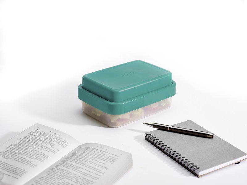 Jeden z pojemników podzielony jest na dwie komory, umożliwiające oddzielenie np. przekąski i owoców.