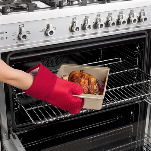 Rękawica kuchenna wykonana z trwałego silikonu i miękkiej bawełny.