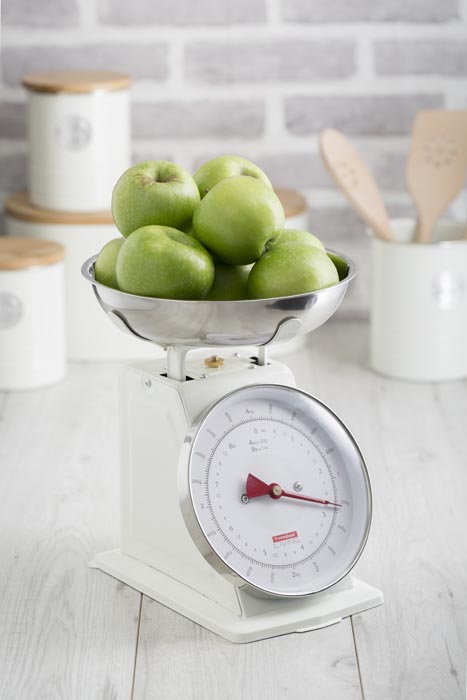 Waga została wyposażona w czytelną tradycyjną tarczę, która posiada skalę w kg oraz lb.