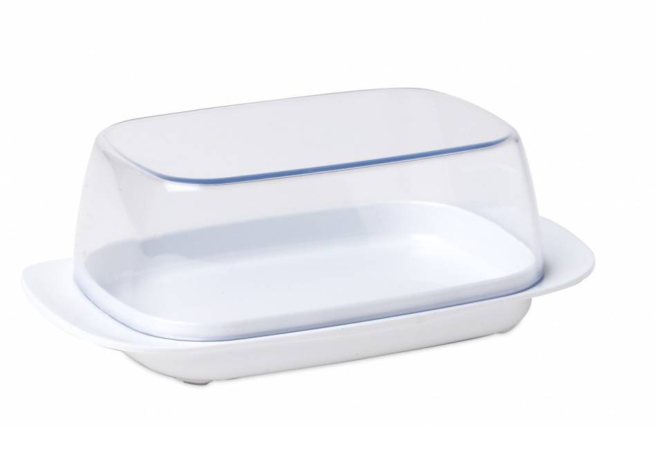 Naczynie do przechowywania masła, wykonane z wytrzymałego oraz bezpiecznego dla zdrowia (wolnego od BPA) tworzywa sztucznego.