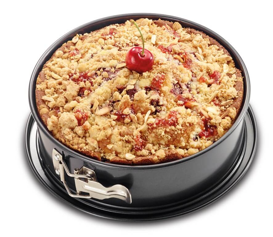 Tortownica z powłoką nieprzywierającą, z rozpinanym rantem - okrągła. Pozwala upiec zarówno zwykłe ciasto, które łatwo wyjąć dzięki rozpinanemu rantowi, jak i tort. Duża średnica pozwala upiec biszkopty, serniki i inne ciasta na różne okazje.