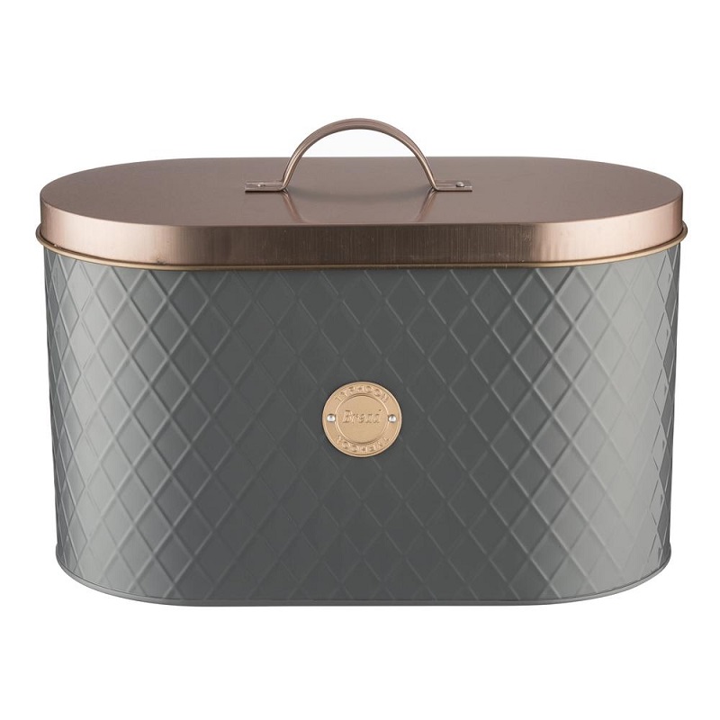 Wykonany został z wysokiej jakości stali malowanej proszkowo. Ścianki chlebaka mają wytłaczany wzrór i ozdobione są miedzianą blaszką z napisem „BREAD” identyfikującą zawartość.