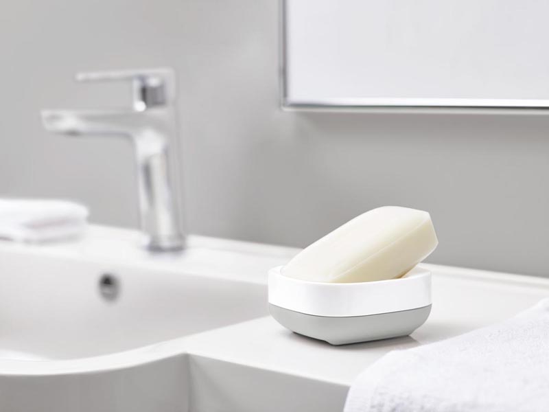 Specjalna antypoślizgowa podstawa zapobiega przesuwaniu się mydelniczki po powierzchni.