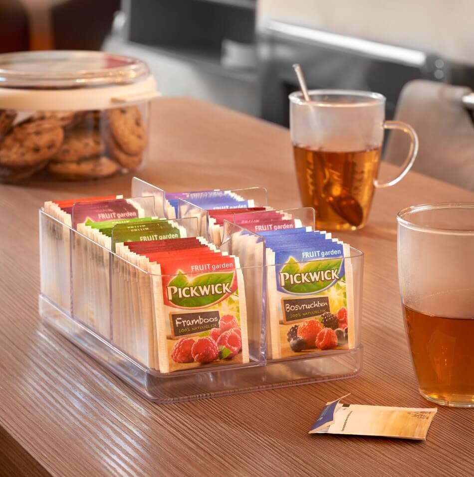 Nowoczesny i praktyczny pojemnik na herbatę holenderskiej marki Rosti Mepal. Dzięki przezroczystym ściankom możemy zobaczyć zawartość bez otwierania.