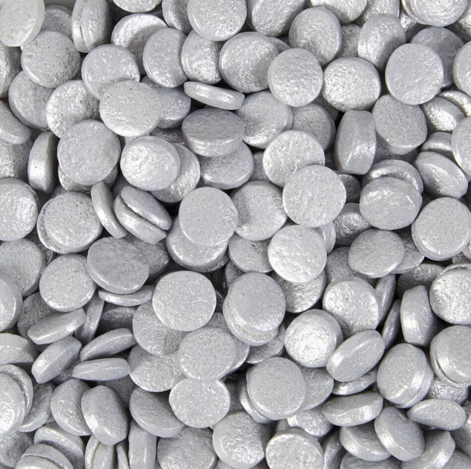 Posypka cukrowa w kształcie srebrnych cekinów.