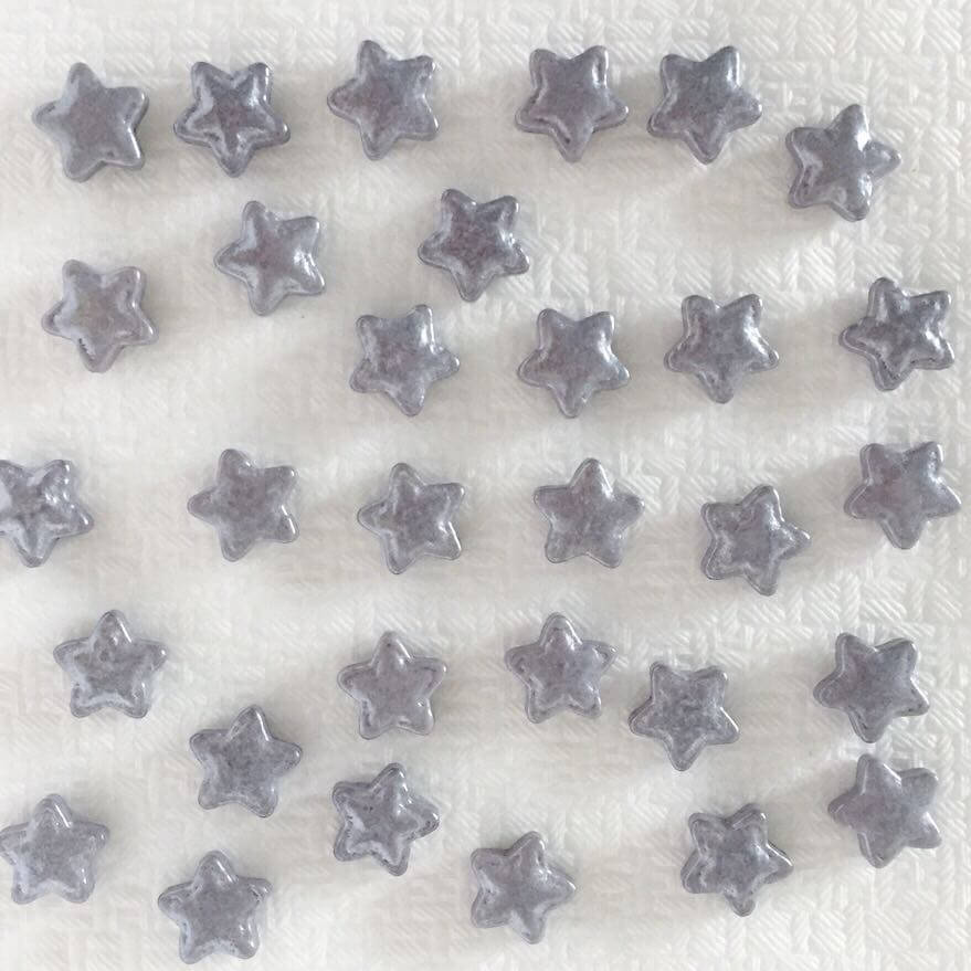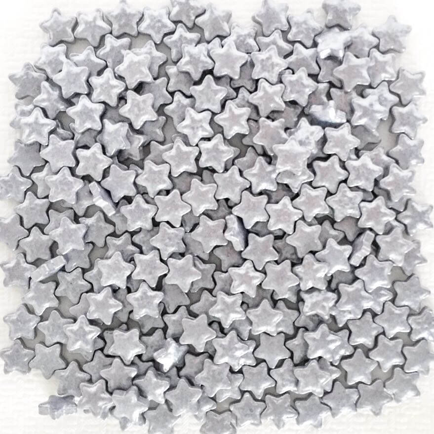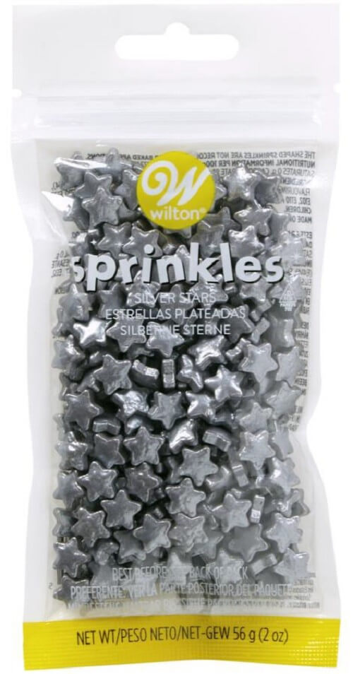Posypka cukrowa w kształcie srebrnych gwiazdek.