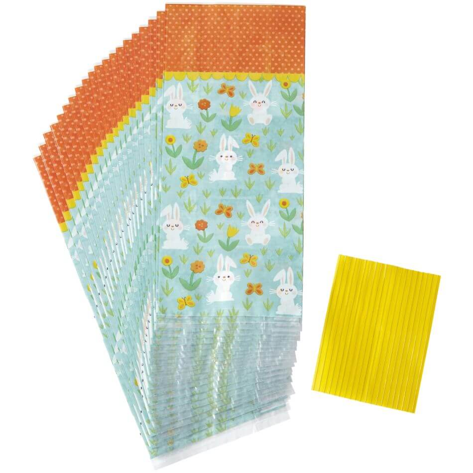 Torebka z wzorem zajączka na łące, wywołuje ciepły uśmiech :)