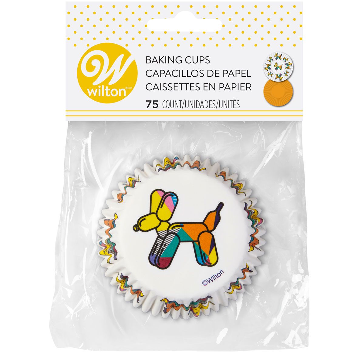 Komplet 75 ozdobnych papilotek z motywem balonowego pieska w różnych kolorach.