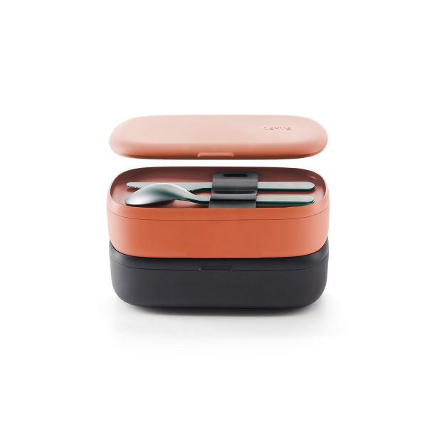 Lunchox posiada hermetyczne 2 pojemniki o pojemności 500 ml każdy. Pojemniki posiadają pokrywki i połączone są elastyczną, silikonową taśmą. W lunchboxie zmieści się dwudaniowy posiłek, wystarczy go podgrzać w kuchence mikrofalowej i zjeść potrawę bezpośrednio z pojemnika.