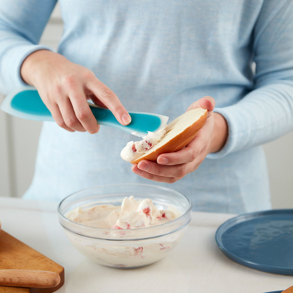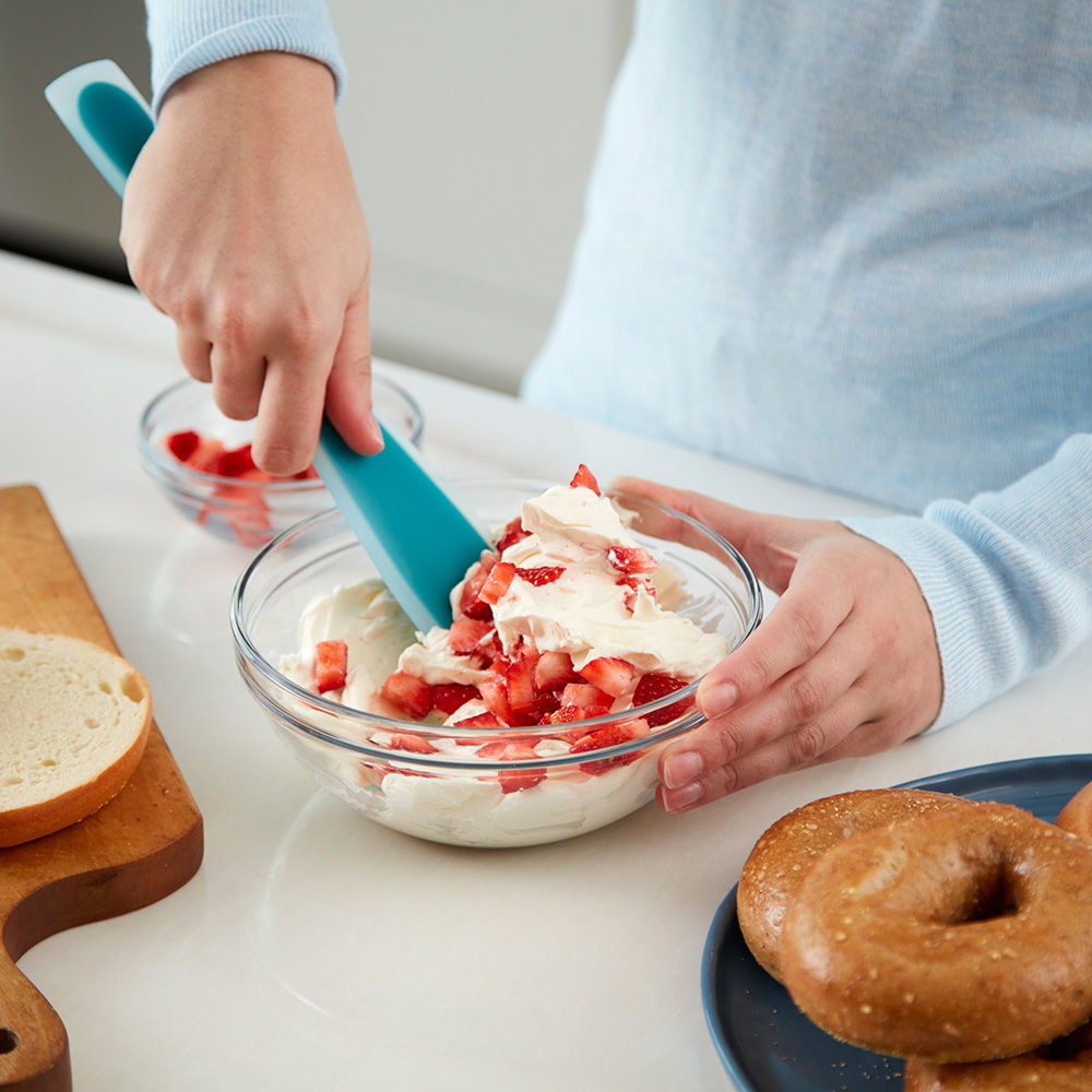 Uniwersalna szpatuła z dwiema końcówkami doskonałymi do mieszania, nabierania, zagarniania oraz nakładania i rozsmarowywania ciasta, mas, czekolady czy bitej śmietany. Pracę usprawnia sztywny nylonowy środek narzędzia oraz miękka, elastyczna silikonowa warstwa zewnętrzna, nieprzywierająca i dokładnie przylegająca do ścianek naczynia.