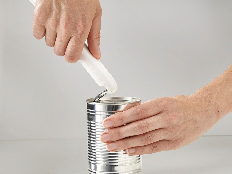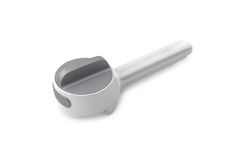 Prosty i bezpieczny w użyciu. Wyposażony w duże pokrętło i przycisk zwalniający odciętą pokrywę. Posiada zintegrowany uchwyt do podnoszenia wieczek typu easy open. Doskonale sprawdzi się zarówno dla osób prawo i leworęcznych.