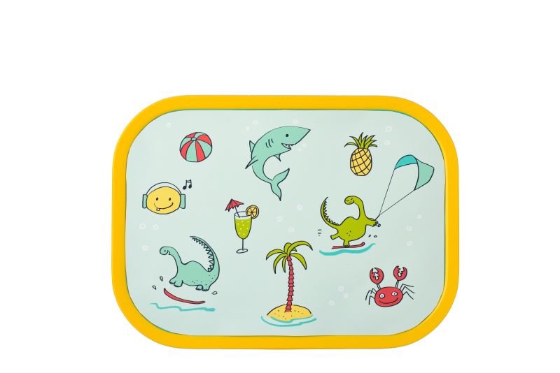 Lunchbox wyposażony jest we wkład na warzywa lub owoce. Po wyjęciu wkładu pojemnik pomieści około 4 kanapek. Do pojemnika dołączony jest również mały widelczyk.