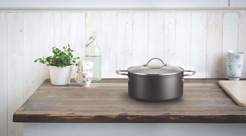 Wykonany z kutego aluminium. Posiada grubsze dno dla lepszej dystrybucji ciepła oraz podwójną powłokę nieprzywierającą. Uchywty zostały wykonane ze stali nierdzewnej. Do garnka dołączona jest szklana pokrywka z otworem odprowadzającym parę.